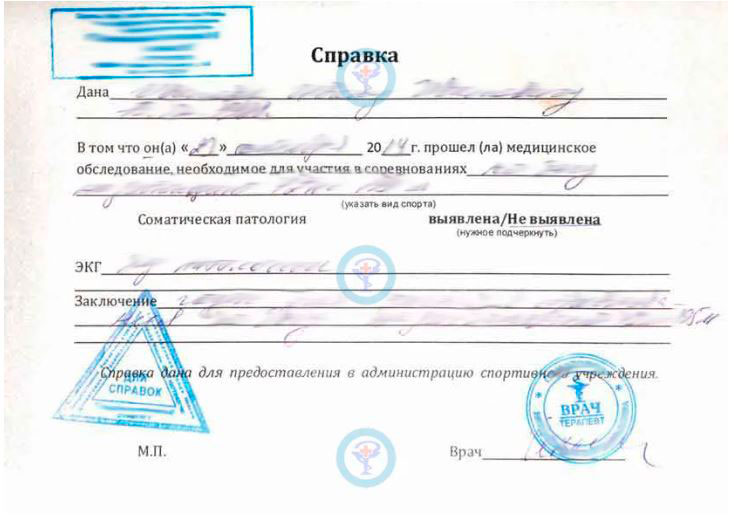 - Помните, перед покупкой справки, вы должны быть твердо уверены в своем здоровье, иначе возникнет риск получить проблемы в соревновательном процессе.